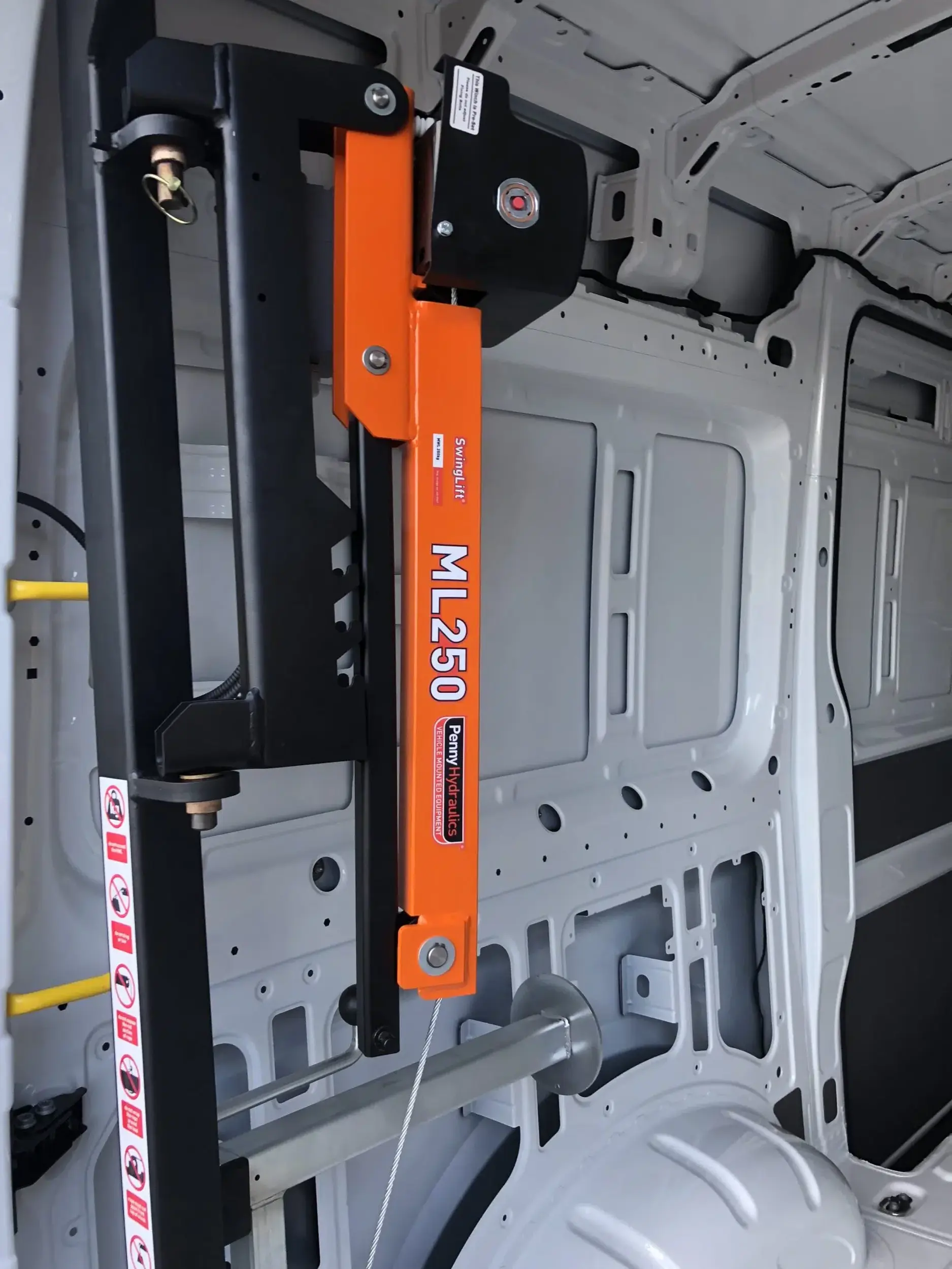 Please note that nearside and offside fittings require a different crane, pillar and fitting kit. It is not always possible to raise the crane boom to its highest position inside a van.